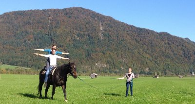 werden eigene Übungen am Pferd in allen drei Gangarten